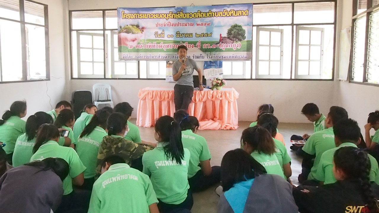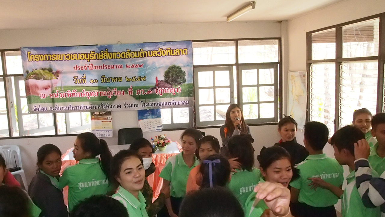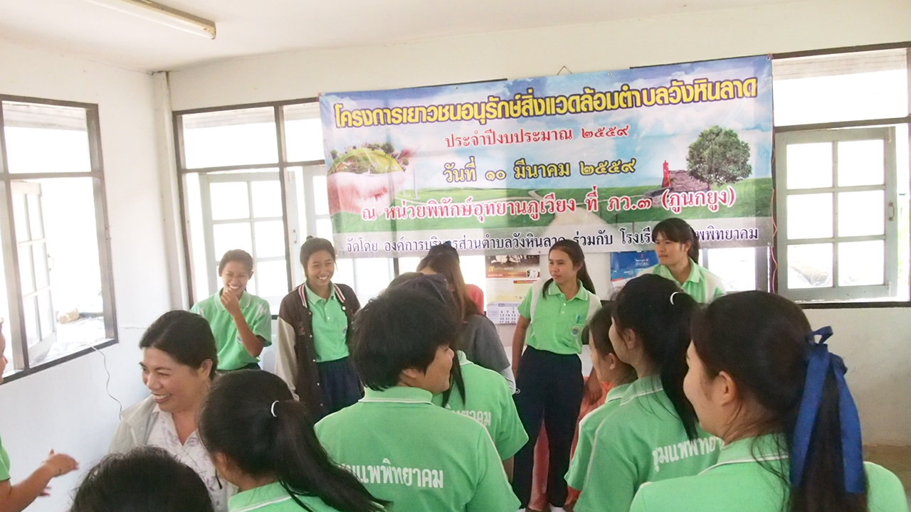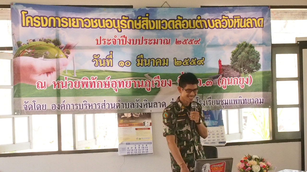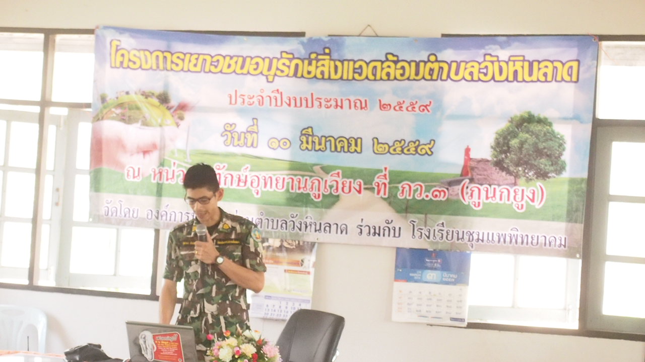 องค์การบริหารส่วนตำบลวังหินลาดได้จัดโครงการค่ายเยาวชนแกนนำสิ่งแวดล้อมตำบลวังหินลาด ประจำปีงบประมาณ 2559 โดยเป็นการดูแลและบำรุงรักษาและการใช้ประโยชน์จากป่าไม้ ที่ดินทรัพยากรธรรมชาติและสิ่งแวดล้อม เพื่อให้เยาวชนมีความรู้ความเข้าใจ เกิดแนวคิดในการบริหารจัดการทรัพยากรธรรมชาติ ให้เยาวชนได้รวมกลุ่มกันทำกิจกรรมในทางการสร้างสรรค์ และเป็นแกนนำกลุ่มเยาวชนในการอนุรักษ์สิ่งแวดล้อมในท้องถิ่น ทำให้เกิดการสร้างแนวคิด ทัศนคติ การบูรณาการในการแก้ไขปัญหาสิ่งแวดล้อม และจิตสำนึกที่ดีให้เยาวชนในการอนุรักษ์ทรัพยากรธรรมชาติ ได้ดำเนินการจัดโครงการเมื่อวันที่ 10 มีนาคม พ.ศ. 2559 ณ หน่วยพิทักษ์อุทยานภูเวียง ที่ ภว.3 (ภูนกยูง) โดยมีวิทยากร จากอุทยานแห่งชาติภูเวียง เป็นผู้มาให้ความรู้เกี่ยวกับ “มนุษย์กับสิ่งแวดล้อม/คุณภาพสิ่งแวดล้อม”